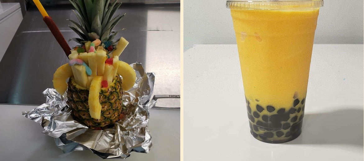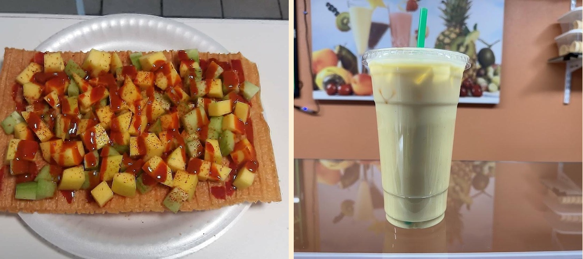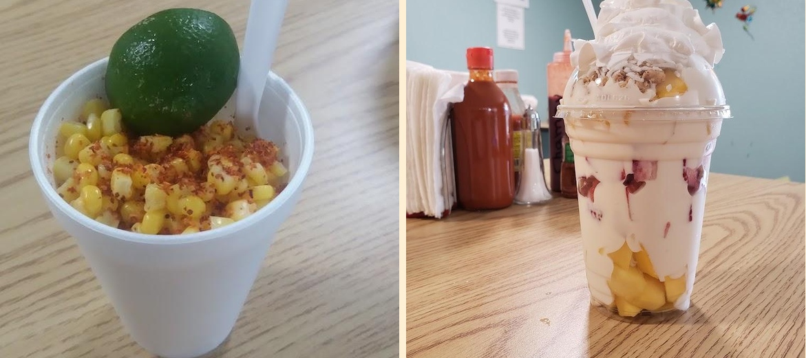 Popular items include boba tea smoothies, hot cheetos with cheese, corn cups, and mango loco. Don't forget to try the fruit cups and strawberries and cream.