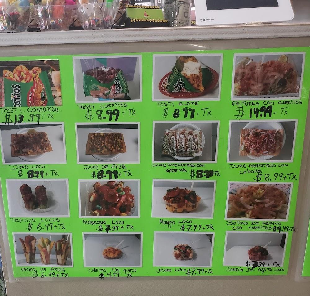 Additional favorites include hot Cheetos with cheese—a must-try for snack lovers—and corn cups loaded with toppings. For fresh fruit lovers, the strawberries and cream offer a refreshing, satisfying option. Experience traditional Mexican flavors with a range of candies and snacks, making it a unique culinary spot in Burlington.